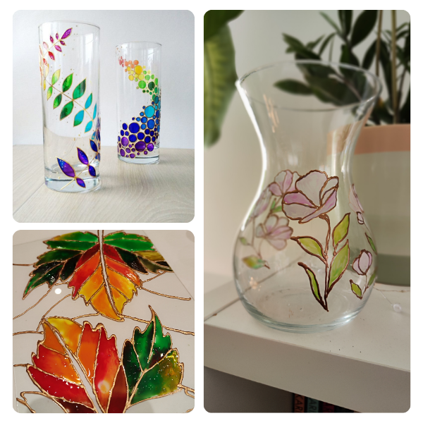 Na ovoj radionici učimo slikanje po staklu sa efektom vitraža koristeći kontur pastu i boje za staklo koje stvaraju izgled pravog vitraža.